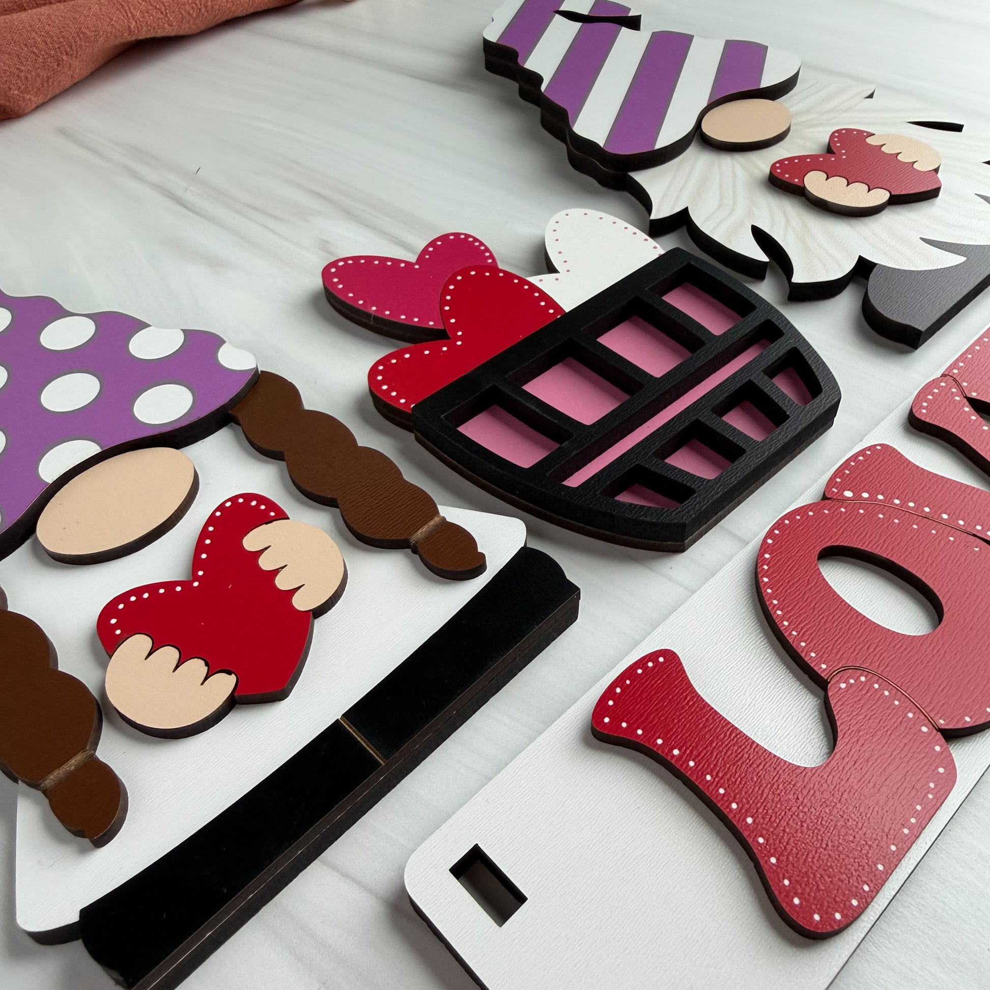 - Whimsical Valentine's Vibes: Dressed in playful purples, reds, pinks, and classic gnome neutrals, with dotted details and scalloped edges that add that extra touch of handmade enchantment.